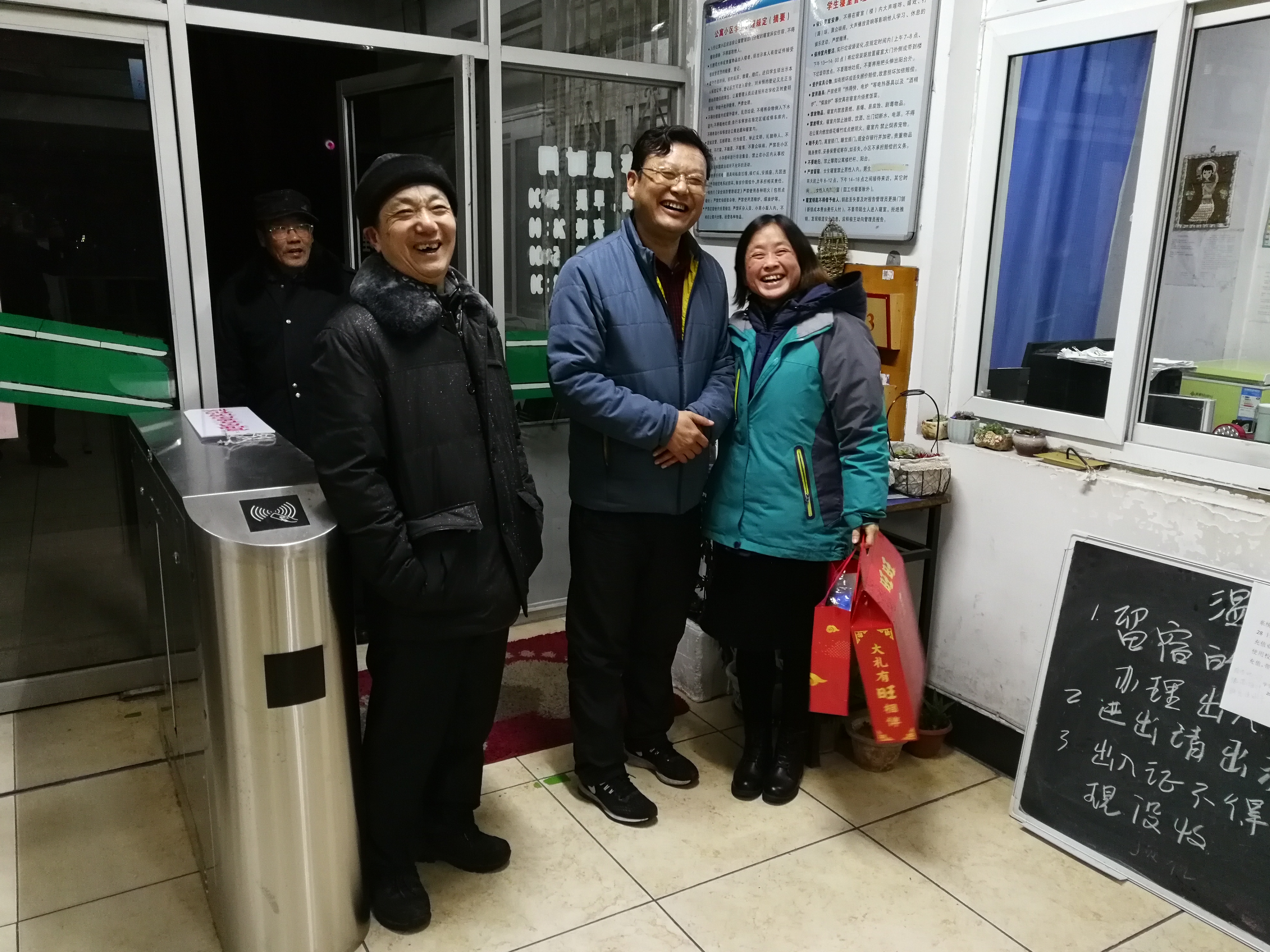 大年三十晚上,公寓小区领导来到学生宿舍楼,向过年没有回家的同学和坚守岗位的员工致以新年的祝福,并赠送了慰问品。