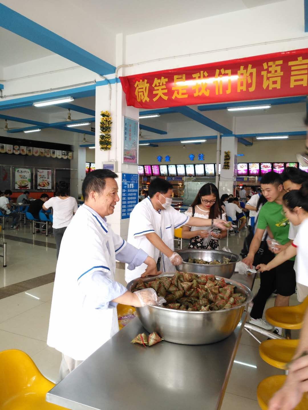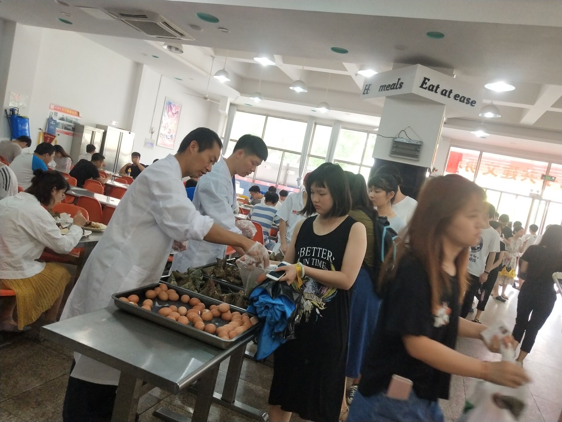 6月18日端午节中午,bet365365用网址党支部组织党员放弃休息时间,来到小区食堂,穿上工装,带上手套,为学生递上免费的粽子和鸡蛋,同时送上节日的问候,让同学们感受到节日的温馨和祝福。