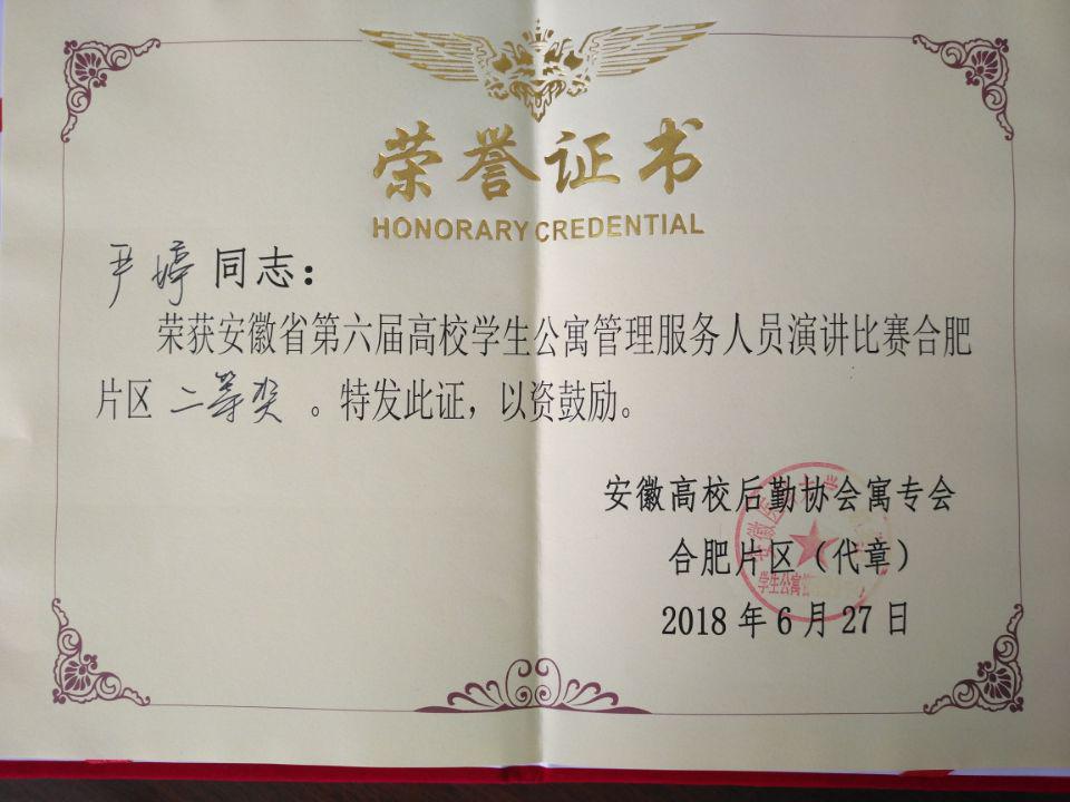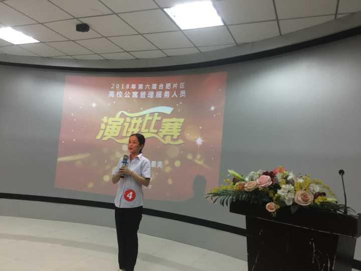 6月27日下午,合肥地区高校公寓管理服务人员演讲比赛在安徽财贸职业学院举办。本地区17所高校的选手参加比赛。安徽省高校后勤协会学生公寓专业委员会的领导、有关高校总务后勤单位负责人和员工100余人现场观摩了比赛。我校学生公寓小区宿管员严婷获得合肥市二等奖,顺利晋级全省决赛。